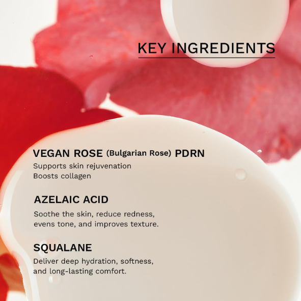 The vegan PDRN serum is crafted with Rose PDRN and Azelaic Acid to revitalize tired skin, encourage renewal, and offer anti-inflammatory properties while addressing hyperpigmentation and redness. Enriched with Sodium PCA and Panthenol, it provides deep hydration, soothes redness and irritation, strengthens the skin barrier, and smooths uneven skin texture. Boasting a creamy yet lightweight consistency, it absorbs quickly without leaving any sticky residue, making it ideal for all skin types. This serum is formulated without potentially harmful ingredients such as mineral oil, drying alcohol, and sulfates.
